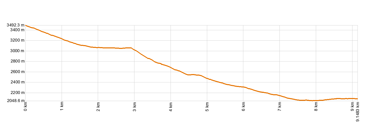 Dit is een zware route die begint bij het informatiepaneel van het uitkijkpunt van Pico Viejo (route nr. 12). Vanaf daar gaat hij enigszins onduidelijk over de zwarte lava omlaag naar de krater van Pico Viejo. De route over de donkere lavasteen is het moeilijkste stuk en dat blijft zo tot je bij La Degollada de Chahorra komt; vanaf daar ga je over puimsteen. Vervolgens trekken we over de zuidhelling beneden de 3.100 meter hoge kraterrand rond de Pico Viejo en dalen we in rap tempo tot Las Narices del Teide, een serie kraters in rechte lijn. Als we die eenmaal voorbij zijn, gaat het pad verder naar Lomo de Chío en vandaar naar de provinciale weg TF-38. Op deze wandeling zien we lavatongen die zijn ontstaan in de middeleeuwen, toen de Teide zijn laatste uitbarsting had. Spectaculair is hier het uitzicht over de krater van de Pico Viejo, met een doorsnee van 800 meter, en over de vulkaanmonden van Las Narices del Teide, die dateren uit 1798, toen het Nationaal Park zijn laatste uitbarsting beleefde.